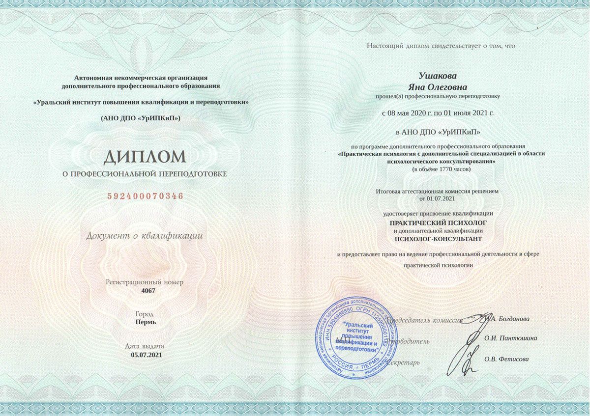 Меня зовут Яна Ушакова, я практикующий психолог-консультант.